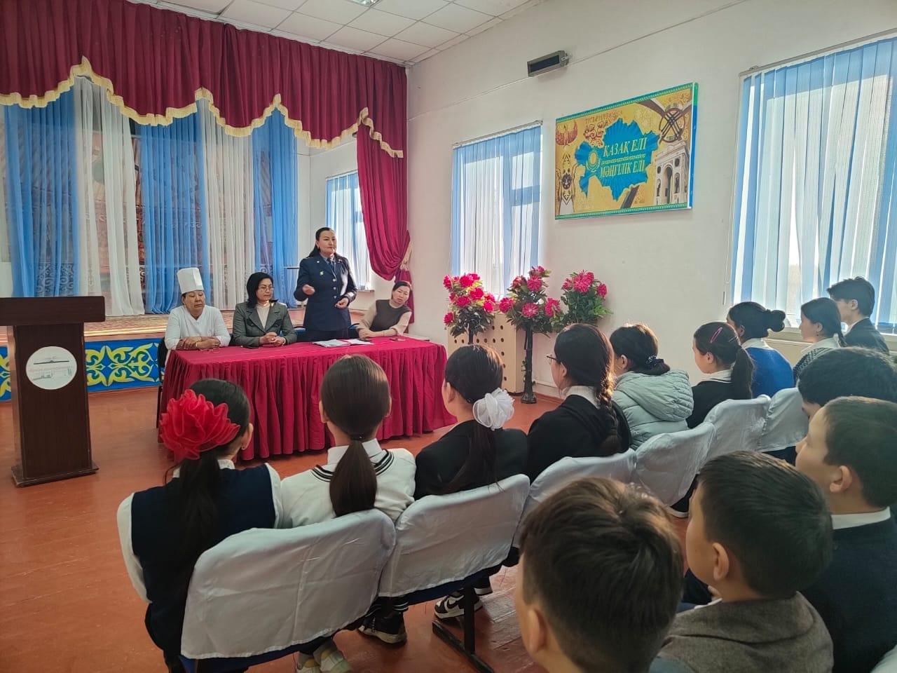 15.02.2023 жылы Отырар аудандық адами әлеуетті дамыту бөлімінің 13.02.2023 жылғы №229-11/01/147 шығыс хатына сәйкес Кәмелетке толмағандар арасында құқықбұзушылық пен олардың арасындағы зорлық – зомбылық іс- әрекетінің профилактикасы аясында 5-9 сынып оқушылары аралығында жиналыс болып өтті. Жиналысқа Отырар аудандық АПБ ЖПҚ ЮПТ инспекторы полиция капитаны Ерденова Динара Жақсыбайқызы қатысты.
