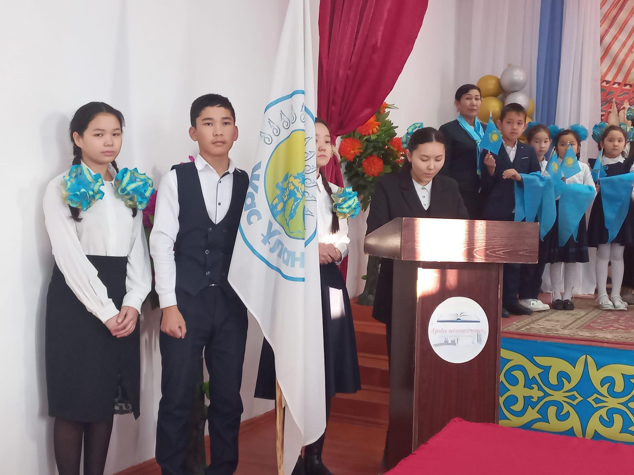 Осы тұрғыда мектебіміздің 2-сынып және үздік оқушыларды "Жас Ұлан" және "Жас Қыран" ұйымына қабылдау рәсіміне арналған салтанатты жиын болып өтті. Жиын барысында оқушыларымыз "Жас Ұлан" ұйымына қабылданушының антында жазылғандай, "Жас Ұлан" ережесін бұлжытпай орындауға, білімге табандылықпен ұмтылуға, Отанымызды мақтаныш етуге салтанатты түрде ант қабылдады.