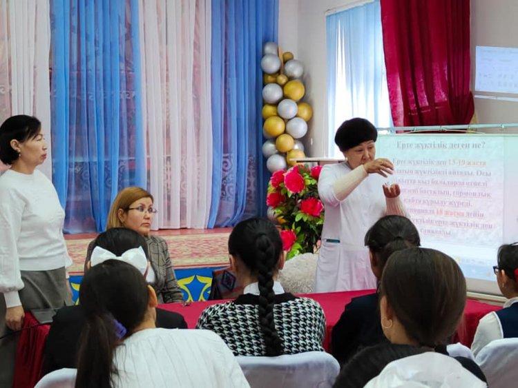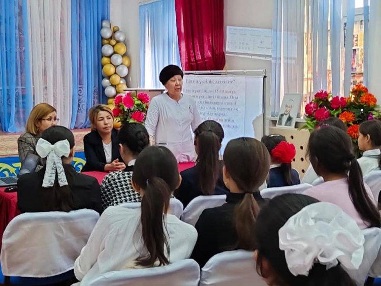 Әдептілік туралы ұғым қалыптастыру, кішіпейілділік, нәзіктік, инабаттылық жайында қыз балалардың ойын дамыту, қоғамдық ортада өзін-өзі ұстай білуге, ізгілікке, мәдениеттілікке, үлкенді сыйлауға, кішіге үлгі бола білуге тәрбиелеу мақсатында "Ергөбек" негізгі орта мектебінде 7- 9 сынып қыздарына қыздар жиналысы өткізілді. Қазіргі қыз тәрбиесі тақырыбында өзекті мәселелер талқыланып, ақыл-кеңестер берілді. Қыздар қоғамдық ортада өзін қалай ұстауы туралы өз пікірлерімен бөлісті. Қыздар өз ойларын ашық ортаға сала отырып, өз сұрақтарына жауап ала білді. Директордың тәрбие жұмысы жөніндегі орынбасары М.Бейсенгір мен мектеп медбикесі Ж.Сеңгірбекова жыныстық өмірдің ерте басталуы қыз баланың психикасының бұзылуына әсер ететінін, ерте жүктілік және амалсыз аборттың қыз денсаулығына орны толмас зиян келтіретінін және оның одан әрі репродуктивті функциясына кері әсер ететіндігін өмірде болған оқиғалармен, видео роликтер арқылы түсіндіріп айтты.