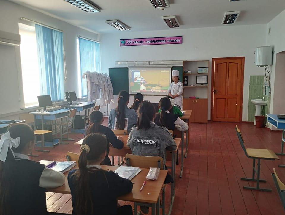 04 апрель 2023 0 1 2 3 4 5 "Денсаулық баршаға" Салауатты өмір салтын сақтану іс- шара жоспарына сай мектеп медбикесі Ж.Сеңгірбекова оқушыларға "Денсаулық баршаға" тақырыбында түсіндірме жұмыстарын жүргізді. Денсаулыққа дұрыс әсер ететін факторлармен толық түсіндірді.