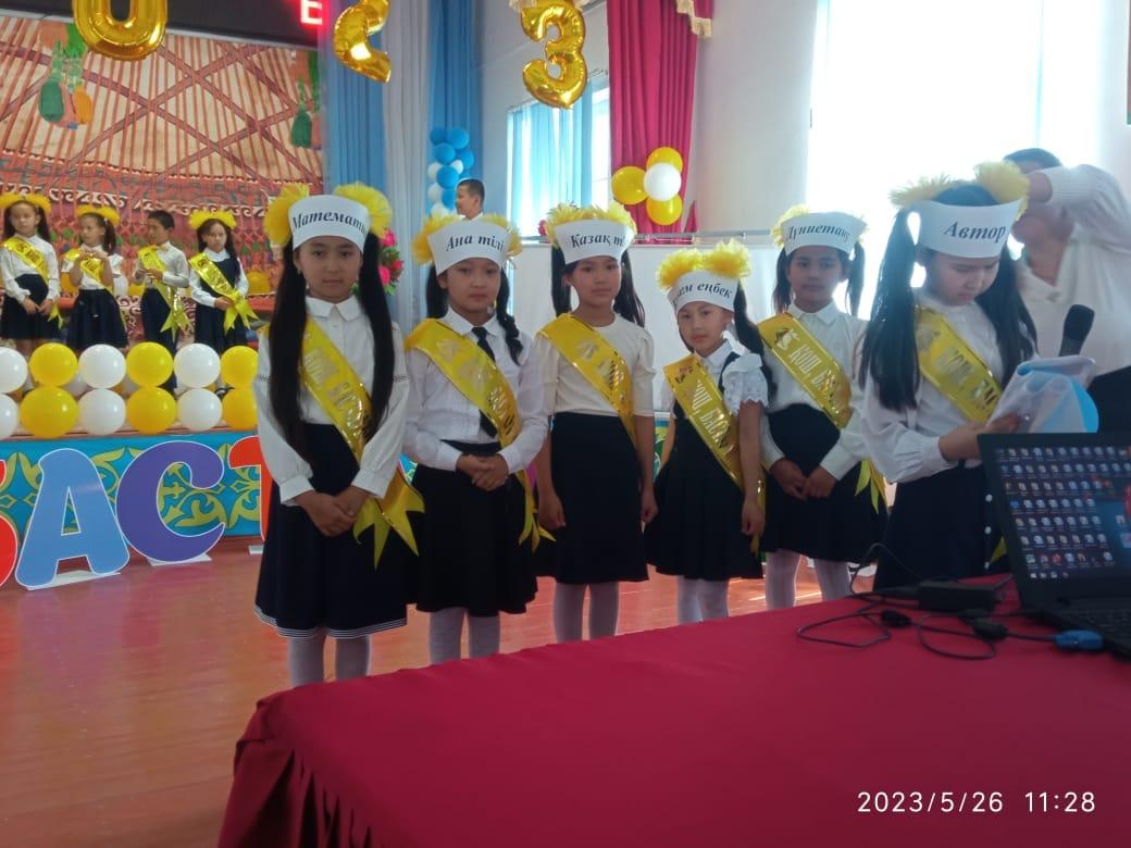 Армандасаң да , қиялдасаң да балалық шағың көз алдыңа келеді. Өйткені, биік асуға беттеген аяулы ғұмыр, ғажайып өмір осынау бал күлкілі балалық шақтан басталады. Міне, бүгін біздің бүлдіршіндер өміріне өшпес із қалдырған бастауыш сыныбымен қоштасып, бір жылға тағы да есейіп, болашаққа қадам басты. Қызықты да, ғаламат өзгерістер сыйлаған, білім нәрімен сусындатқан, өмірде өз жолдарын табуға жол сілтеген ұстаздарына, ата-аналарына бүлдіршіндеріміз өз өнерлерін көрсетіп, көрермен қошеметіне ие болды.