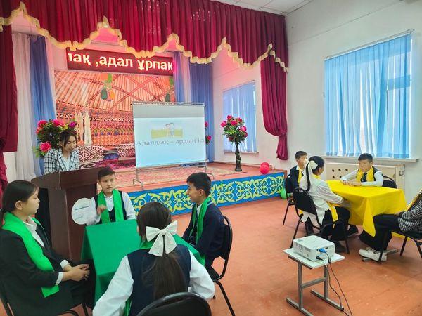 "Біртұтас тәрбие бағдарламасы" жоспарына сай "Саналы ұрпақ"Адал ұрпақ" клубының "Адалдық - ардың ісі" тақырыбында сайыс сабақ өтілді. Жетекшілер: тәлімгер Г.Байтасова, ұйымдастырушы педагог Н.Садуақас.