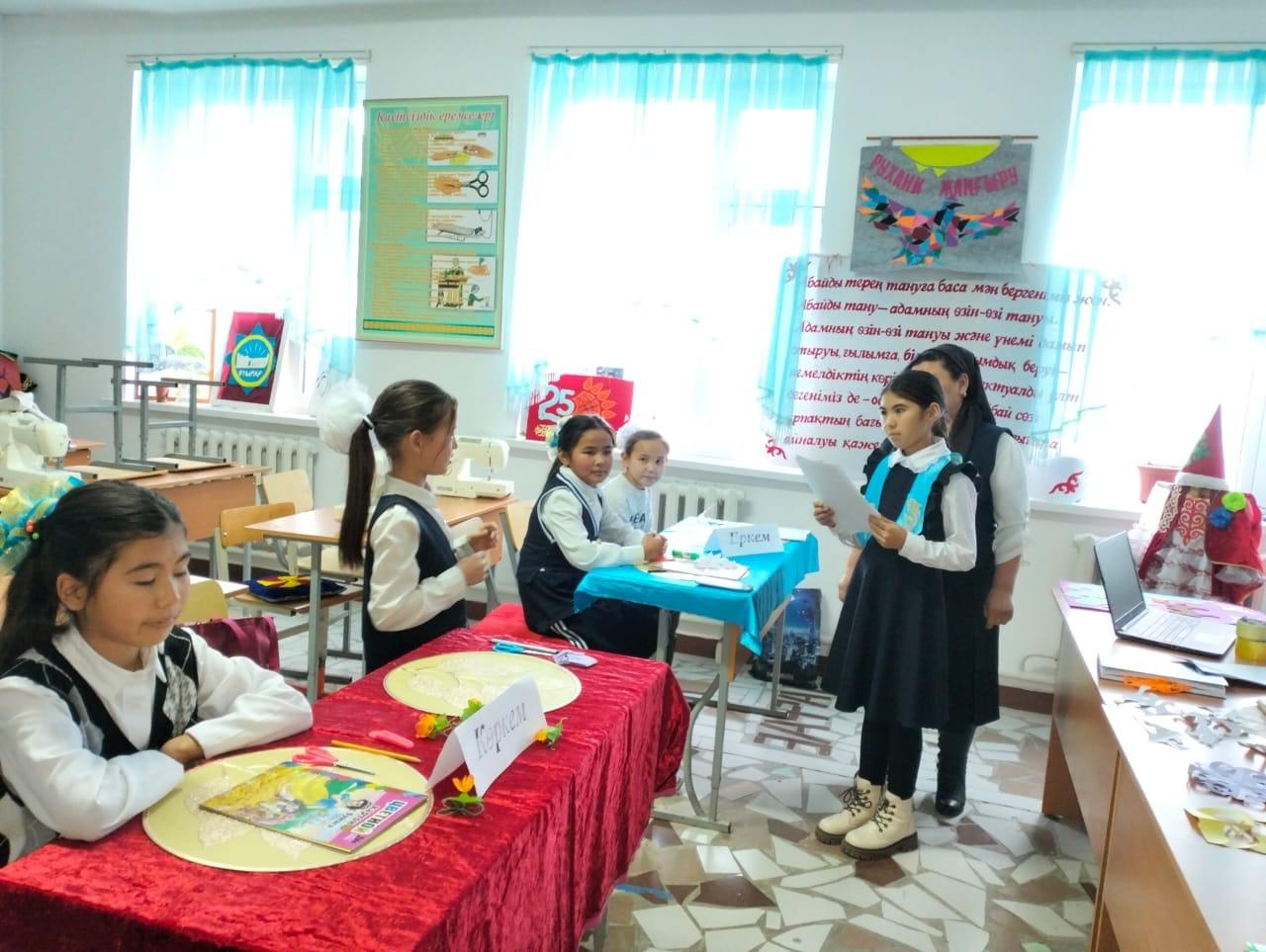 Түркістан облысы, Отырар ауданы. "Ергөбек" негізгі орта мектебінде "Өнерлі ұрпақ - кемел болашақ!" тақырыбында үйірменің айлық жоспарына сай, "Қыз қылығымен көркем" тақырыбында "Шебер қолдар" үйірме жетекшісі Спаева Бақыткүл сайыс ұйымдастырып өтті.