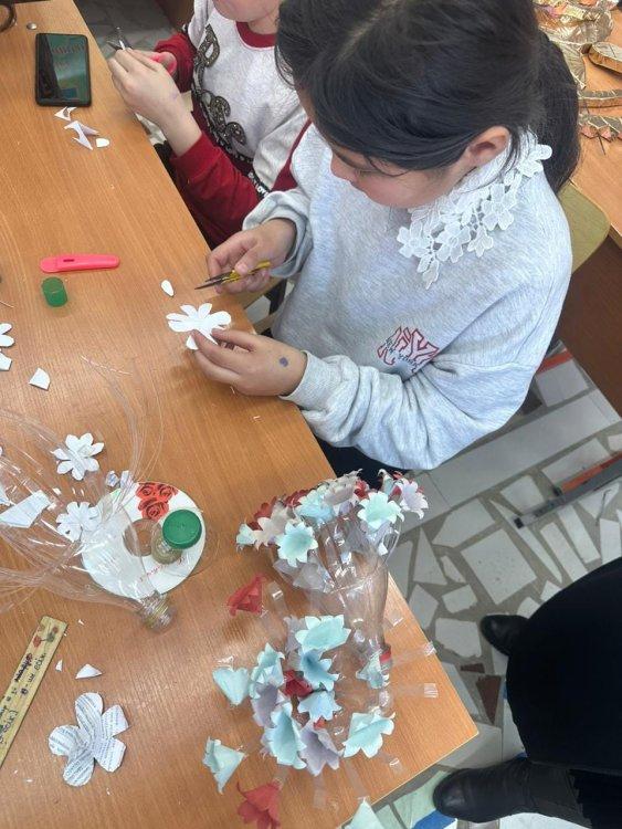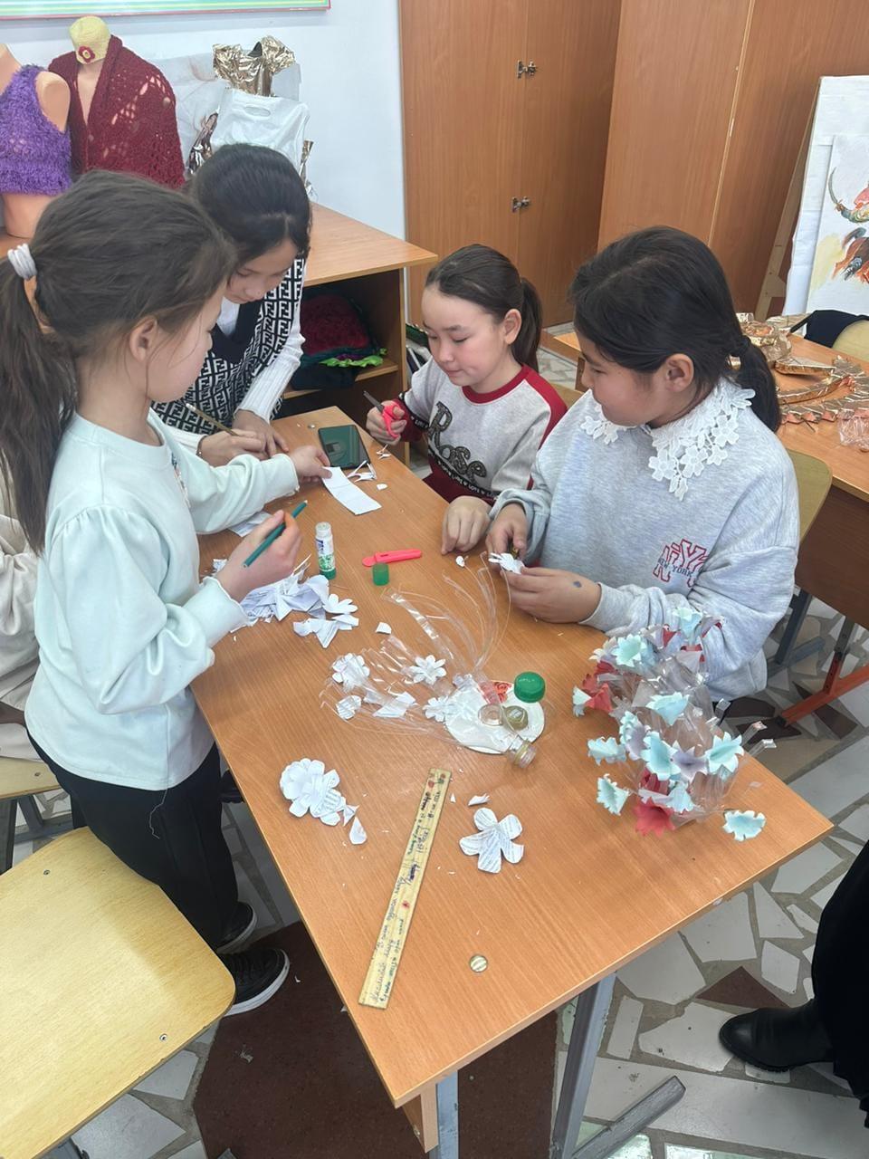 "Қалдықтарды табысқа айналдырайық" тақырыбында "Шебер қолдар" қыздар үйірме жетекшісі Спаева Бақыткүлдің ұйымдастыруымен сабақ өтілді.