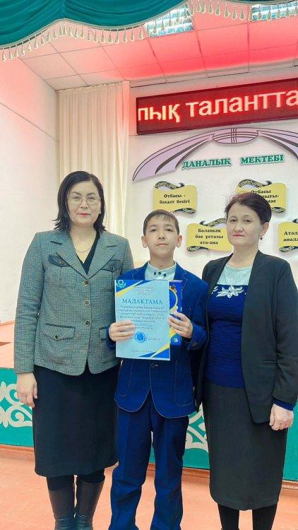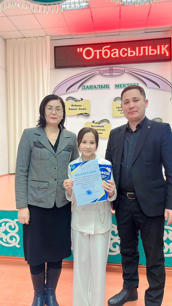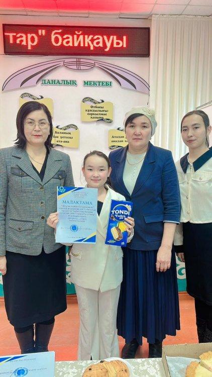 "Біртұтас тәрбие бағдарламасы" аясында Ұйымдастырушы педагог Садуахас Назеркенің ұйымдастыруымен "Отбасылық таланттар" тақырыбында байқау өтті. Байқауға 6-сынып оқушылары қатысып, өз өнерлерін ортаға салды. Байқауда жақсы өнер көрсеткен отбасылар мектеп директоры М.Әлшериеваның мақтау қағазымен Жорақовтар отбасы, Сейілқұловтар отбасы, Жолдасбековтар отбасы марапатталды.