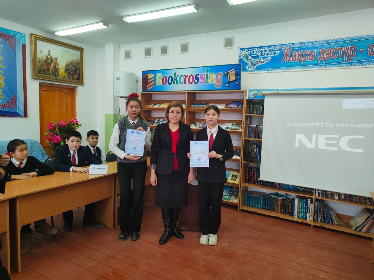 Сайыс барысында "Атамұра", "Қазына" тобы болып, бөлініп. Мақал- мәтел мен жұмбақ айту, табудан сайысты. "Қазына" тобын мектеп директорының тәрбие ісі жөніндегі орынбасары М.Бейсенгір құттықтап, мақтау қағазымен марапаттады.