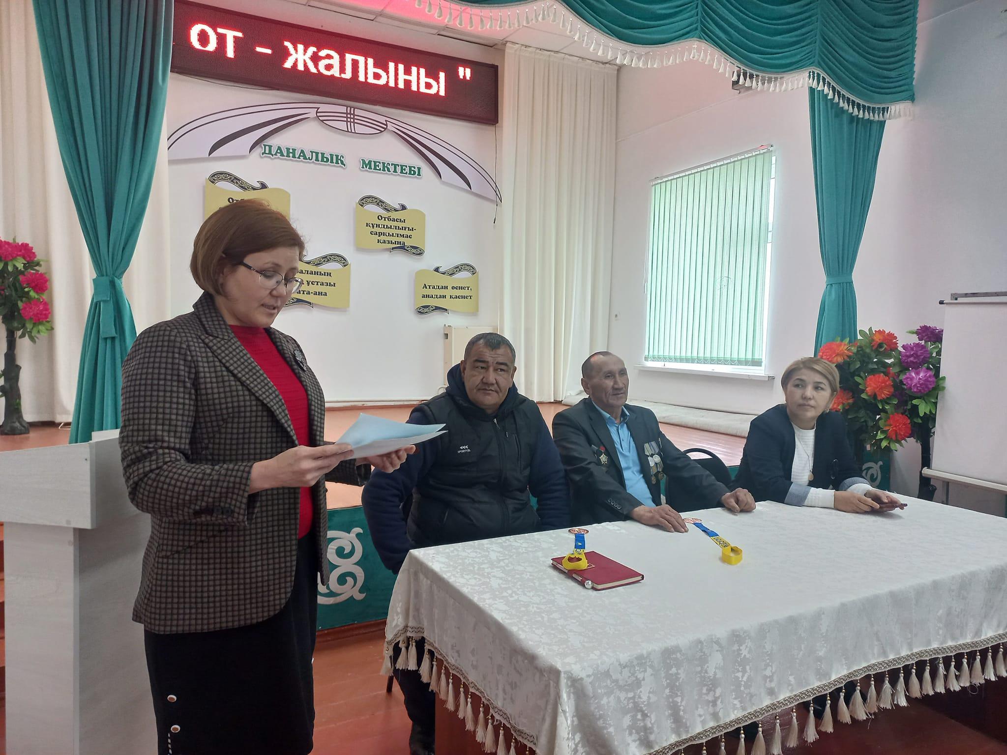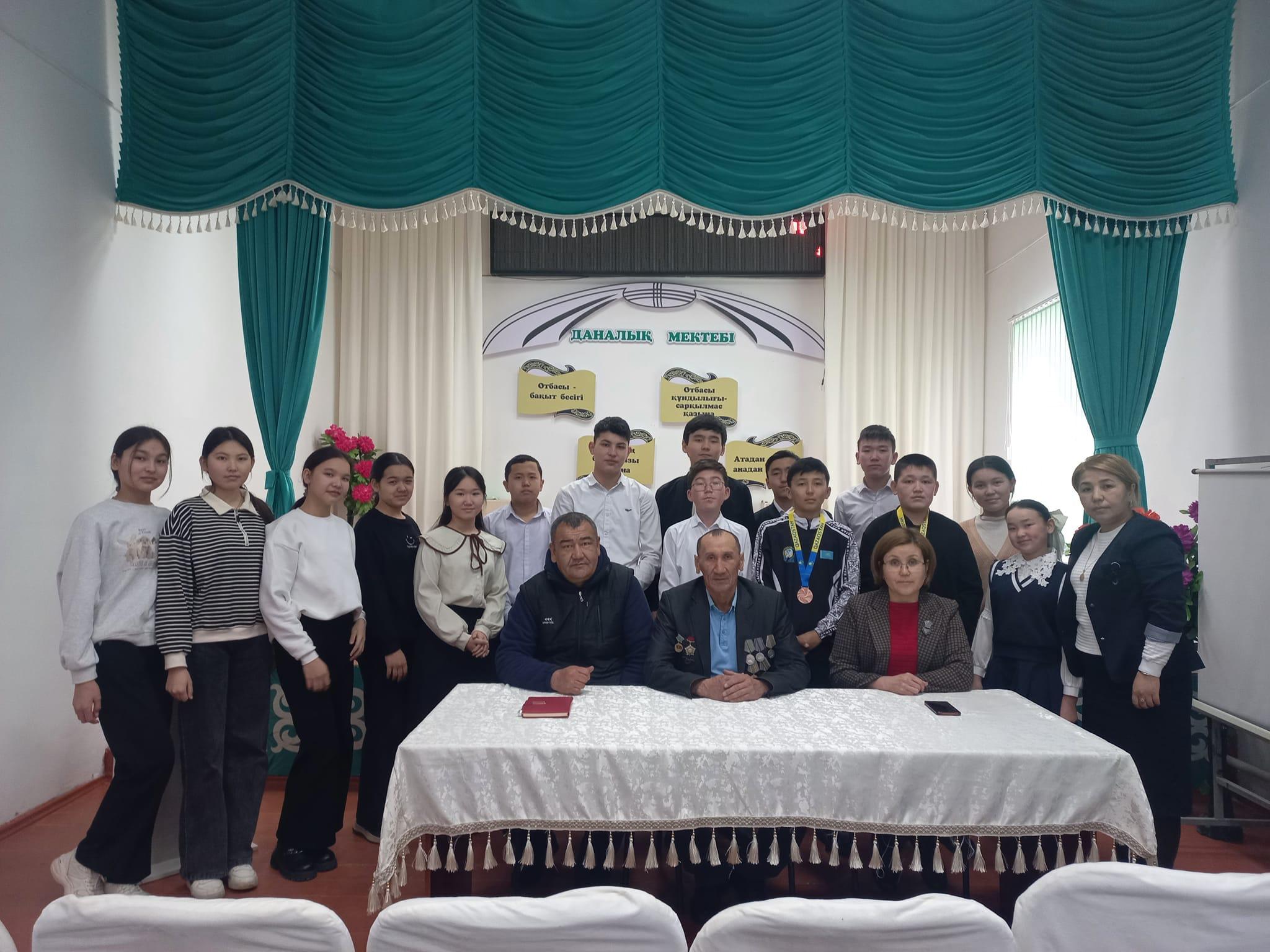 Ауған жерінде оқ пен оттың арасында жүріп, елге аман-есен оралған "Ауған ардагері" Алиев Мұхтар ағамыз естеліктерімен бөлісіп, оқушыларға тағылымды әңгімелерін ортаға салды.