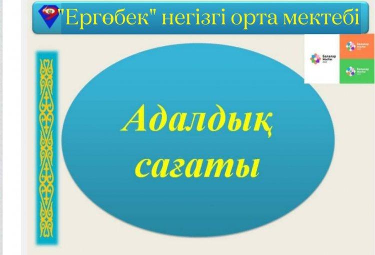 Түркістан облысы. Отырар ауданы «Ергөбек” негізгі орта мектебінде "Адалдық сағаты" іс-шарасы ұйымдастырылды. 1-9 сынып оқушылары арасында Адалдық- адамдықтың белгісі"аясында сынып сағаттары өтілді. Мақсаты: ұлттық құндылықтарды жас ұрпақтың бойына сіңіру арқылы,адал еңбек пен рухани адамдық қасиеттері жоғары бағаланатын,жемқорлықсыз парасатты қоғам құруға. болатынына сенімін қалыптастыру.Іс-шара барысында адалдық,достық туралы тәрбиелі әңгімелер айтылып, пікірталастар ұйымдастырылды.