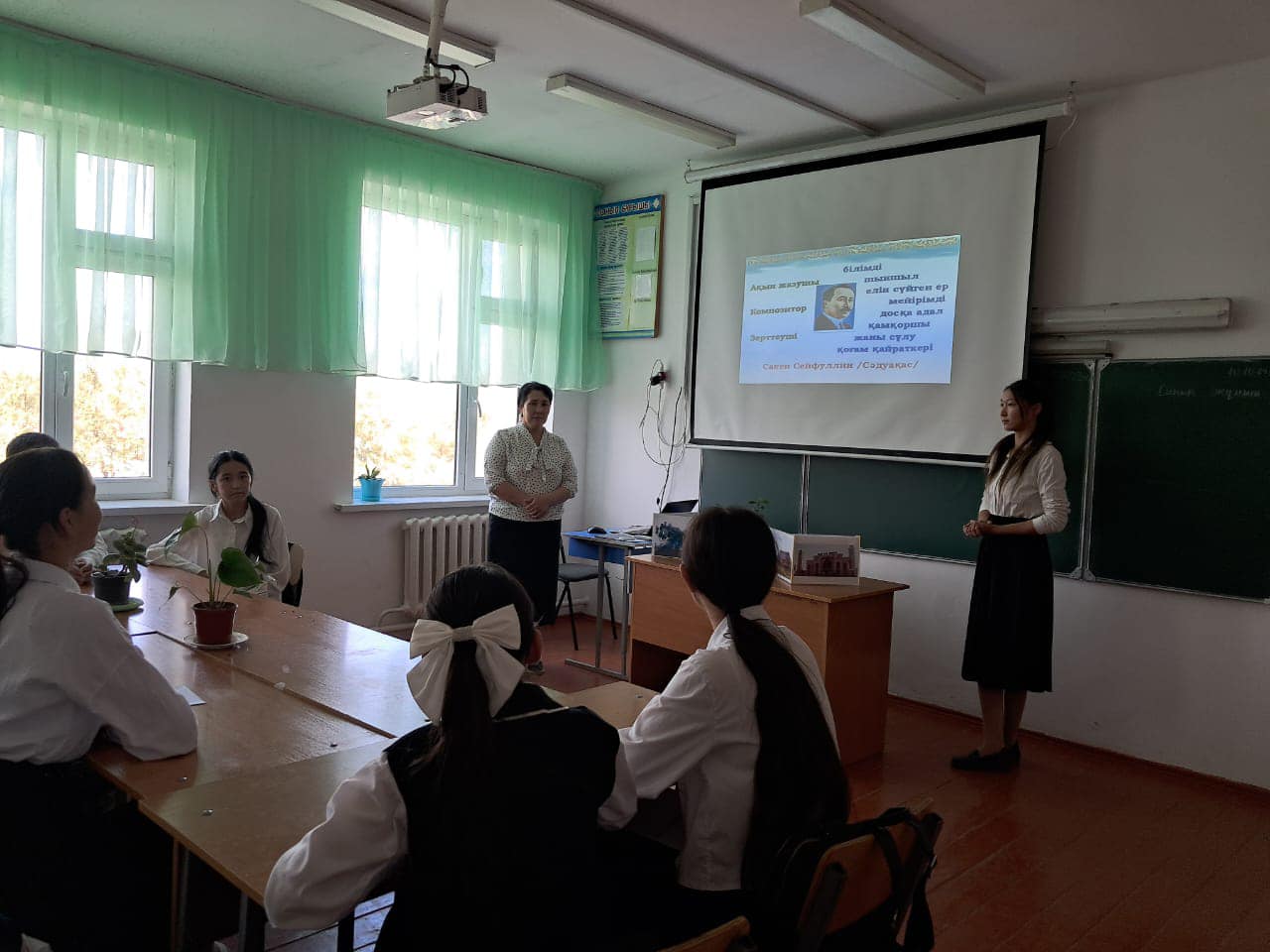 12 октябрь 2024 0 1 2 3 4 5 “Қазақ әдебиетінің ақсұңқары” Түркістан облысы, Отырар ауданы“Ергөбек” негізгі орта мектебінің 8-сынып жетекшісі Д.Өмірбай “Біртұтас тәрбие” бағдарламасына сай, С.Сейфуллиннің 130 жылдығына орай “Қазақ әдебиетінің ақсұңқары” тақырыбында ашық тәрбие сағатын өтті.