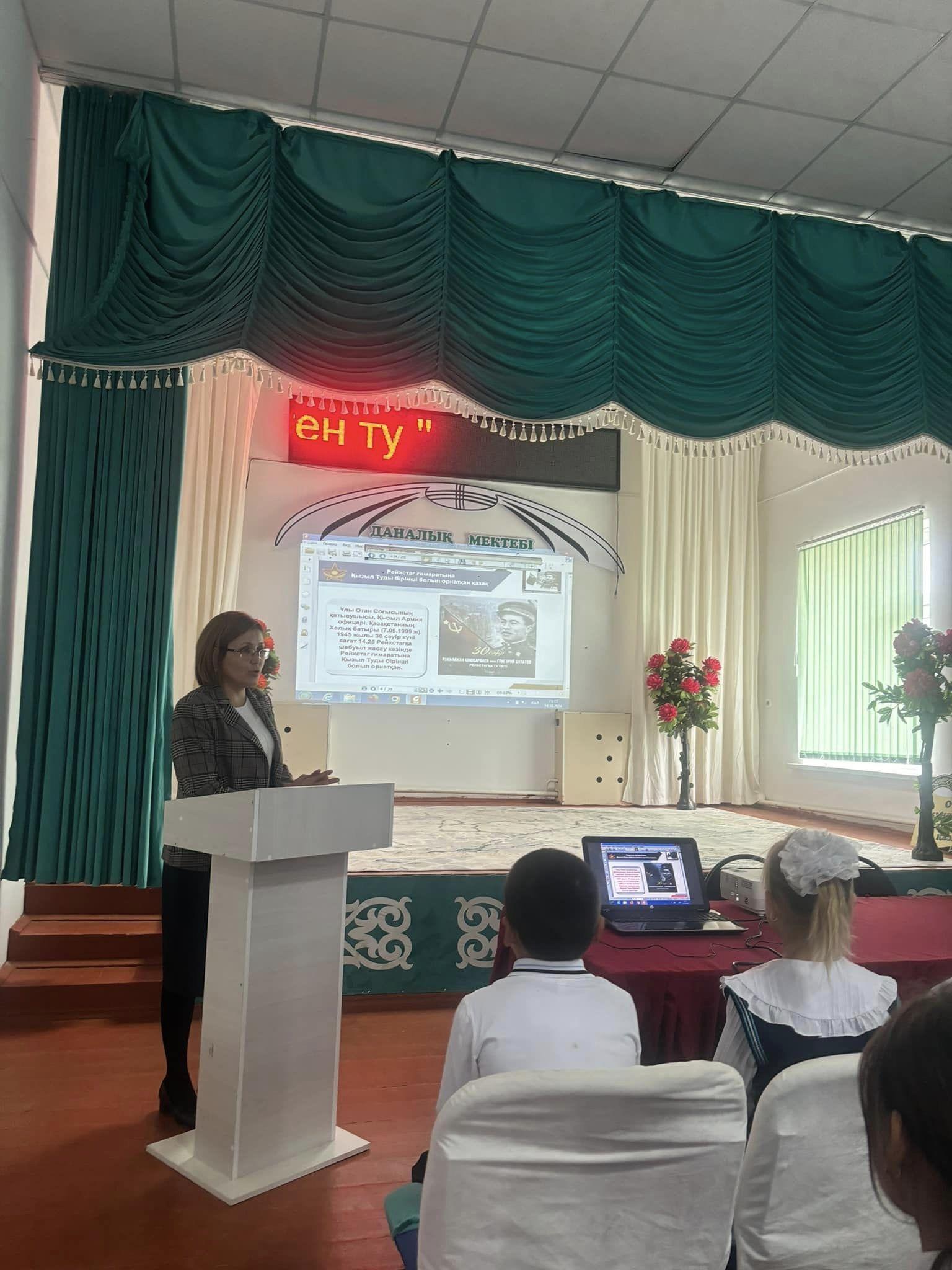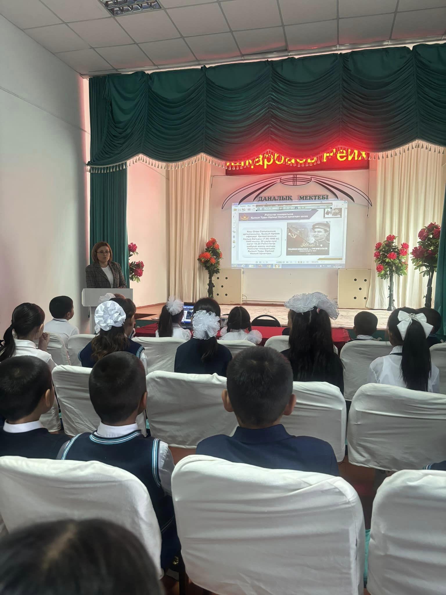 Түркістан облысы, Отырар ауданы “Ергөбек” негізгі орта мектебінде Халық қаһарманы Рақымжан Қошқарбаевтың 100 жылдық мерейтойына орай 14 қазан сағат 10:00-де “Рақымжан Қошқарбаев Рейхстагқа тігілген ту” тақырыбында 1-9 сынып оқушыдарына бірыңғай сабақтар өткізілді.