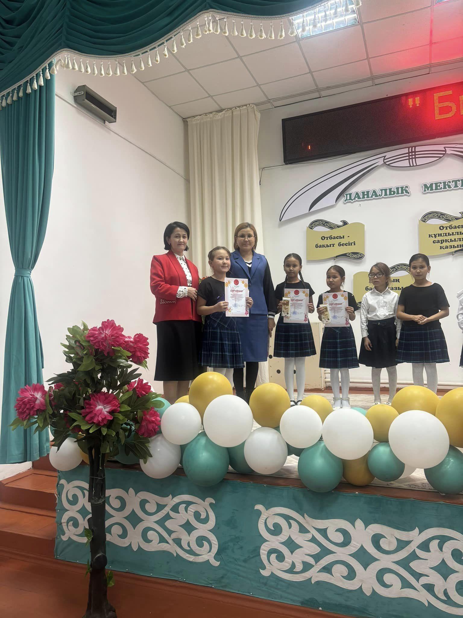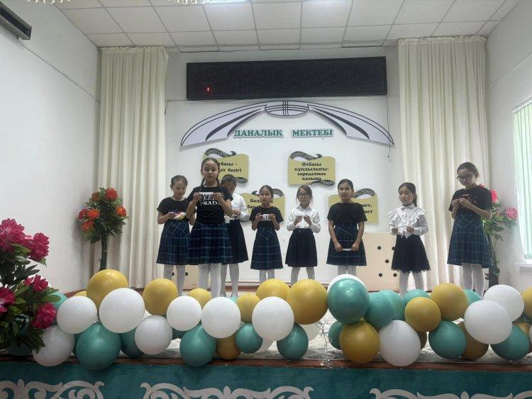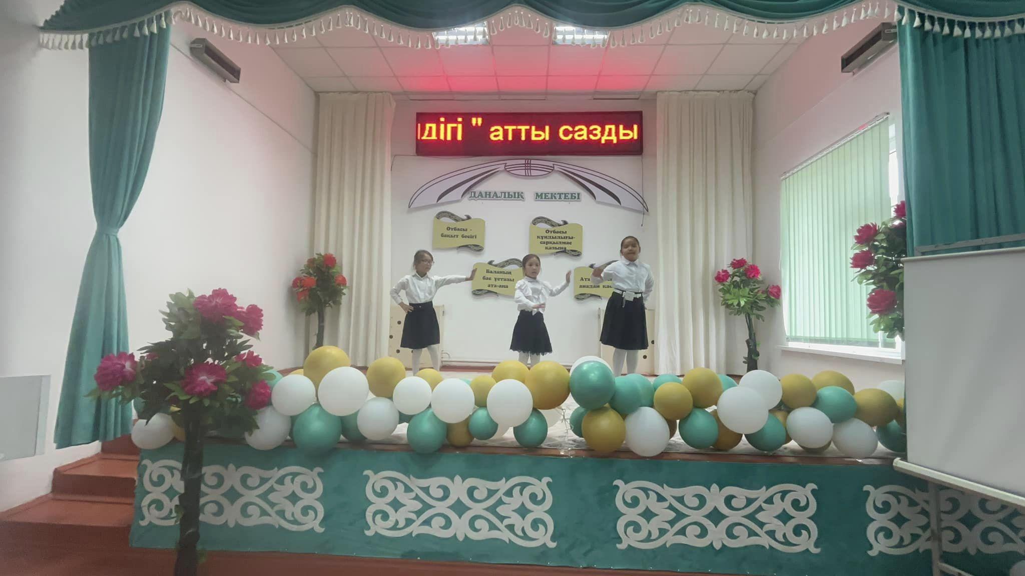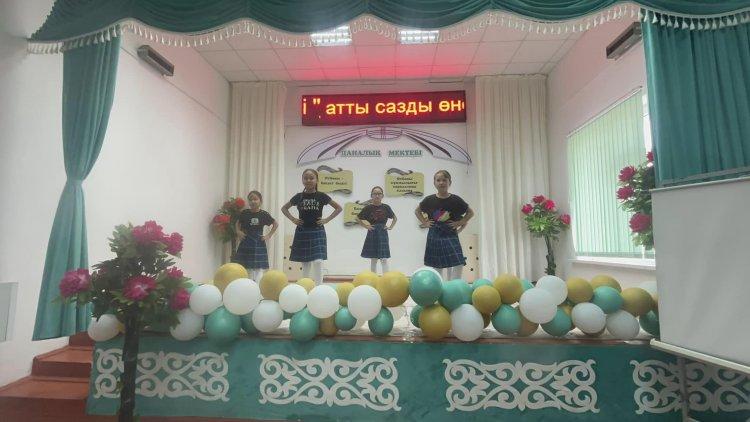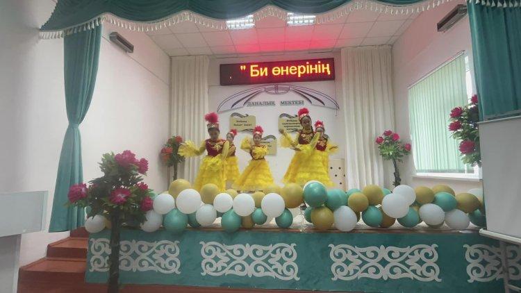 Оқушылар би билеп, өз өнерлерін көрсетті.