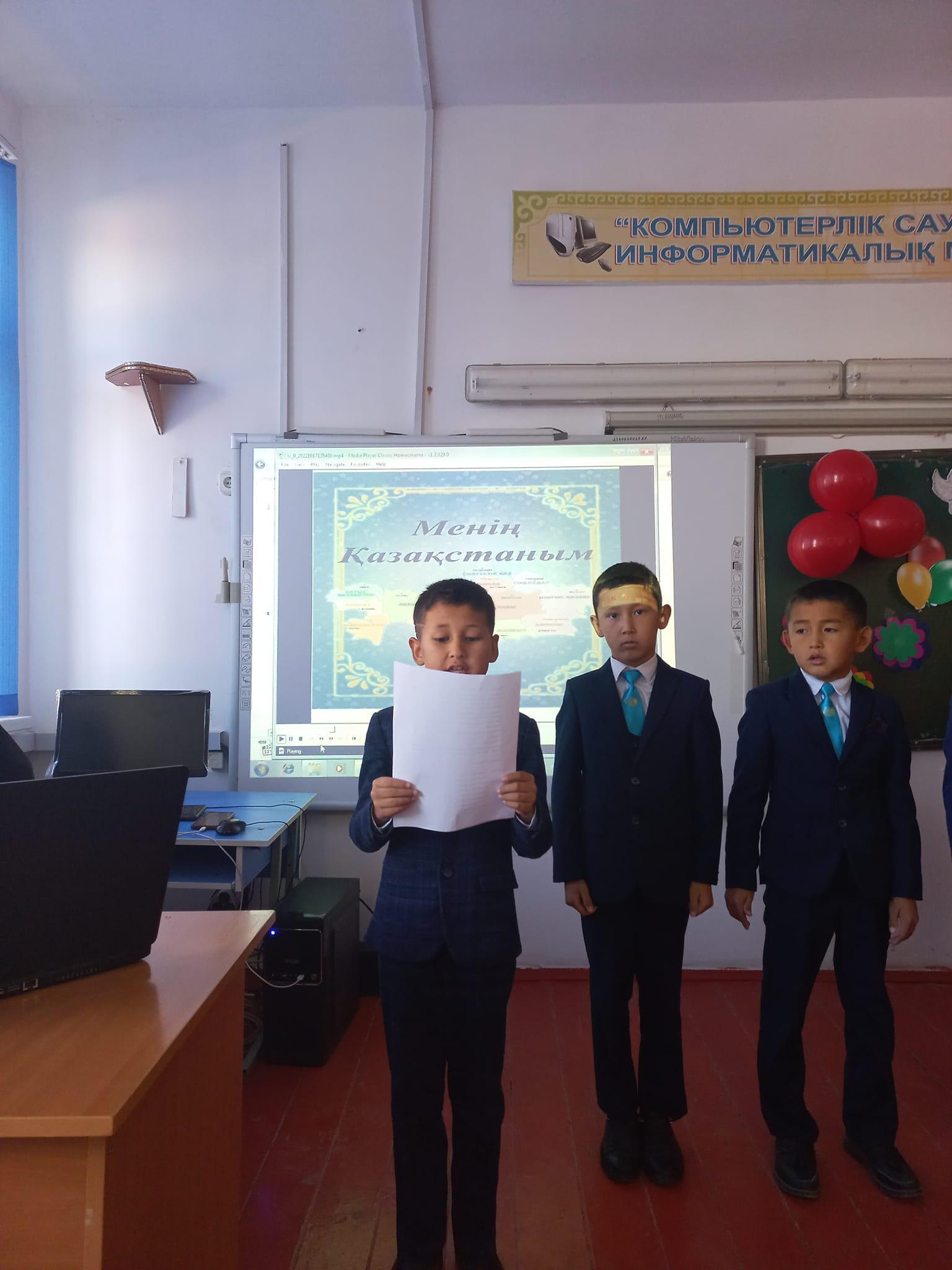 20 октябрь 2022 0 1 2 3 4 5 "Қазақ елі менің - Отаным" "25 қазан Республика күніне" орай 3 сынып жетекішісі Жүнісбаева Перизаттың ұйымдастыруымен "Қазақ елі менің - Отаным" атты ашық тәрбие сағаты өткізілді. Оқушылар өз өнерлерін көрсетті.