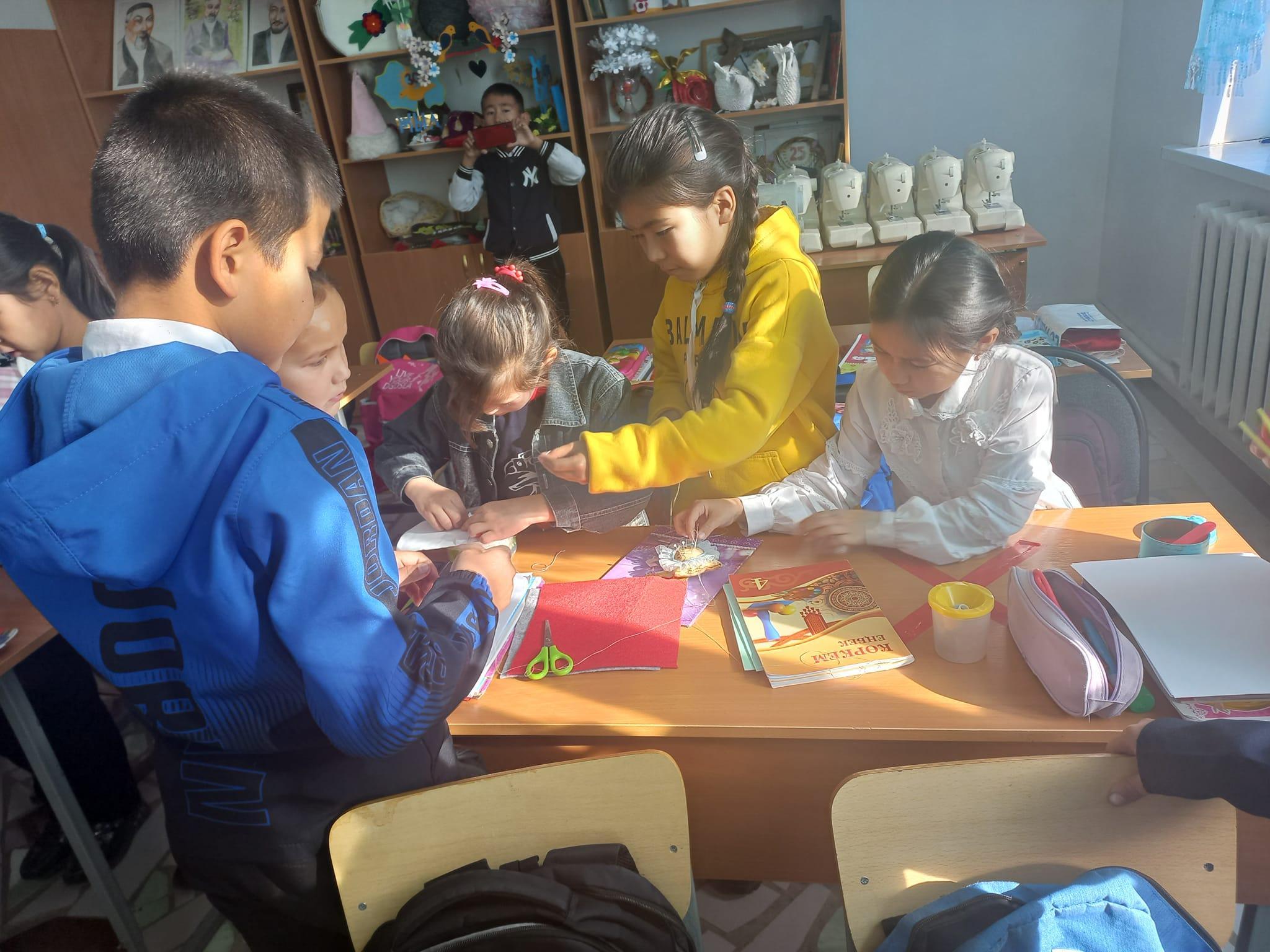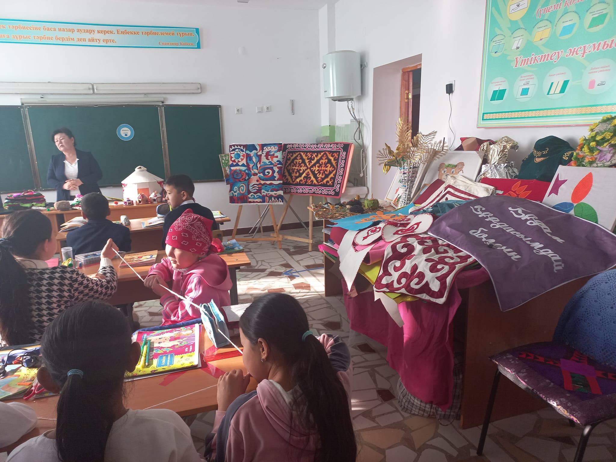 “Спорт және өнер” бірлестігінің 07-30 қараша аралығындағы "Шығармашылық: қабілет, әуестік” тақырыбындағы айлық барысында, технология пәнінің мұғалімі Спаева Бақыткүл 17 қараша күні "Киіз үйдің ішкі көрінісі" "Аяққап жасау" тақырыбында 4 - сынып оқушыларымен ашық сабақ өтті. Сабақта түрлі әдіс тәсілдер қолданды. Сыныпты киіз үйдің жабдықтарымен жабдықтаған. Аяққаптың жасалу жолымен таныстыру мақсатында бейнеролик көрсетіп, сабақ барысында аяққап жасалды. Оқушылар белсенділік танытып, сабақ жоғарғы дәрежеде өтілді.