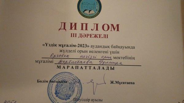 Түркістан облысының білім басқармасының Отырар ауданының білім бөлімінің ұйымдастыруымен 22 қараша күні өткен "Үздік мұғалім - 2023" аудандық байқауының ІІІ орын жүлдегері мектебіміздің бастауыш пәнінің мұғалімі Дербисбаева Гулмира және "Үздік қосымша білім беру педагогі" байқауының "ІЗДЕНІМПАЗ МҰҒАЛІМ" жеңімпазы "Драма" үйірмесінің жетекшісі Нысамамбетова Нұрсұлу апайларымызды шын жүректен жеңістерімен құттықтаймыз! Ұстаздарымызға еңбекте шығармашылық табыс тілейміз!!!