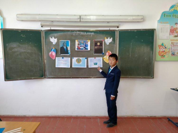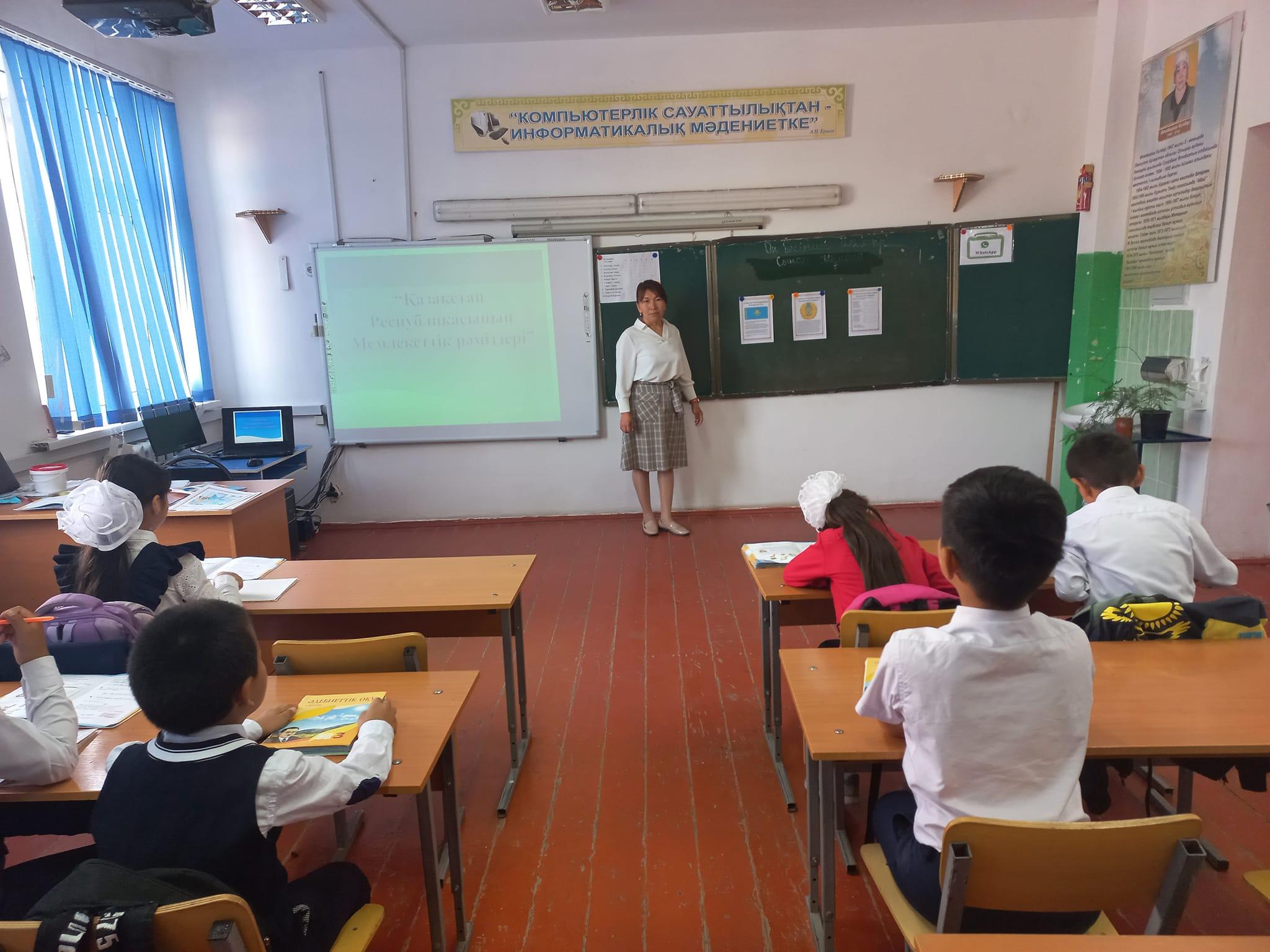 Қазақстан Республикасының мемлекеттік рәміздерін насихаттау бойынша 2023 жылға арналған айлық жоспарына сәйкес, сынып жетекшілердің ұйымдастыруымен 1-9 сынып оқушылар арасында "Менің елімнің рәміздері - менің мақтанышым" тақырыбында сынып сағатын өтті.