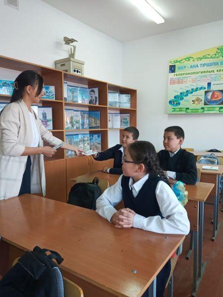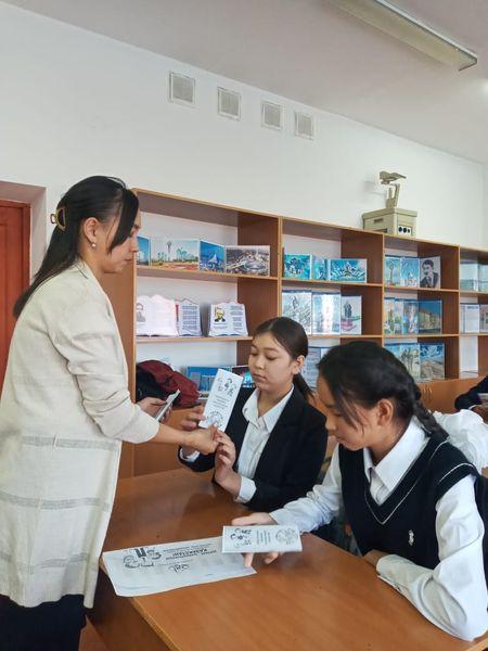 Ұйымдастырушы педагог Садуқас Назерке оқушыларға буклет қағаздарын тарқатып, түсіндіру жұмыстары жүргізілді.