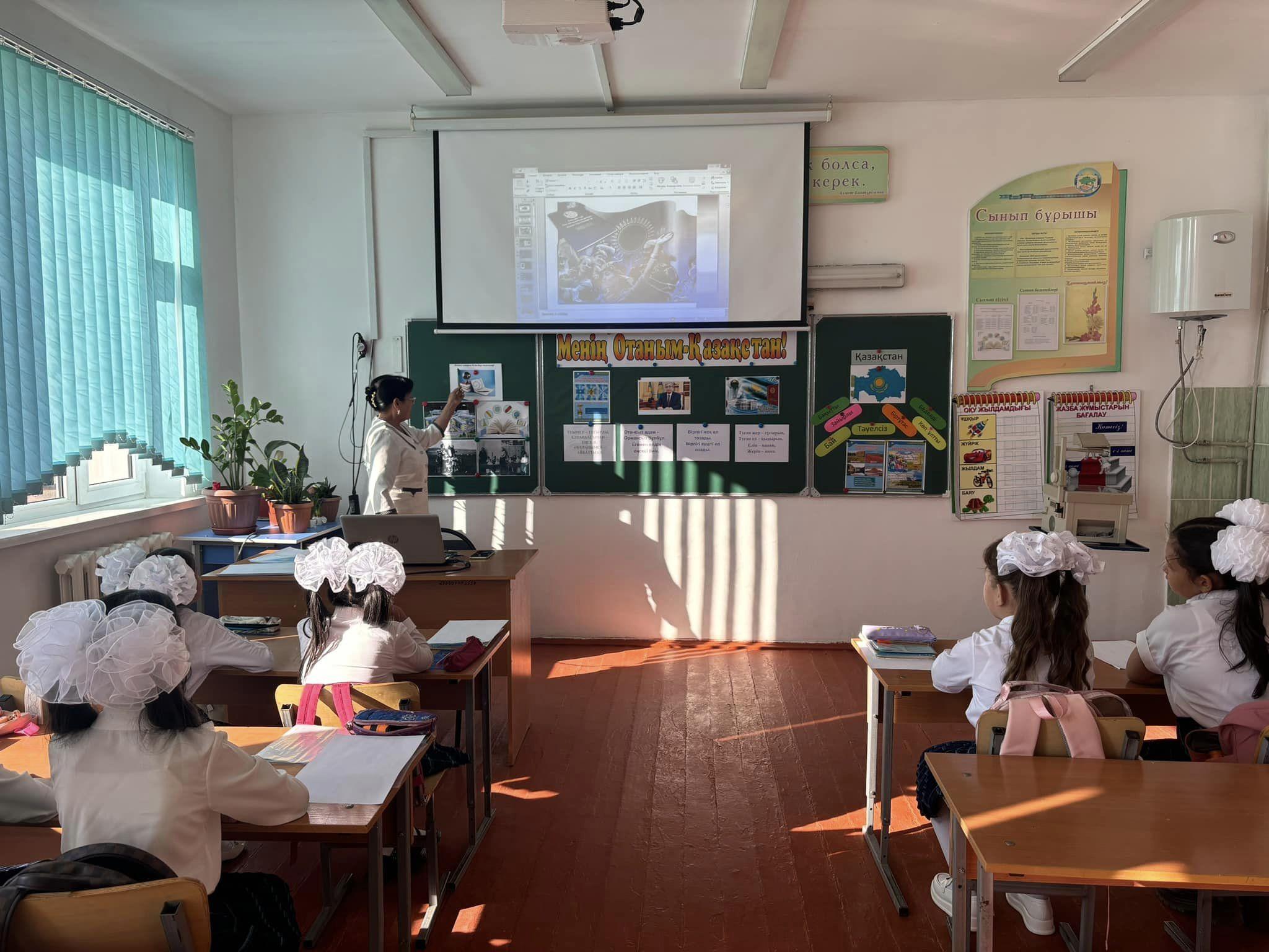 “Ергөбек” негізгі орта мектебінде 2-қыркүйек күні “Менің Отаным-Қазақстан” тақырыбында бірыңғай сынып сағаттары жүргізілді. Сынып сағаты барысында білім алушыларға «достық», «қайырымдылық», «мейірімділік» құндылықтары туралы кеңінен түсінік беру; сынып ішінде осы құндылықты қалыптастыруда оқушы мен ұстаздың рөлінің маңыздылығына мысалдар келтіру жұмыстары жүргізілді.