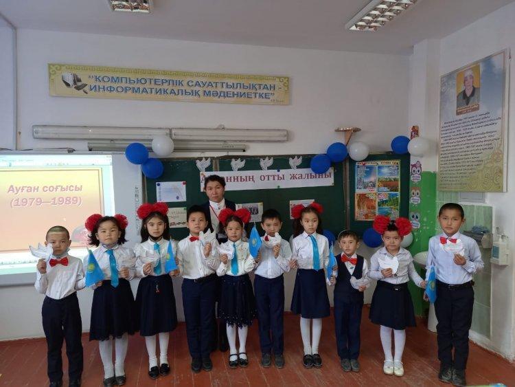 Ергөбек негізгі орта мектебінің 2- сынып жетекшісі Дербисбаева Гүлмираның ұйымдастыруымен "Ауғанның отты жалыны" тақырыбында ашық тәрбие сағатын өтті.