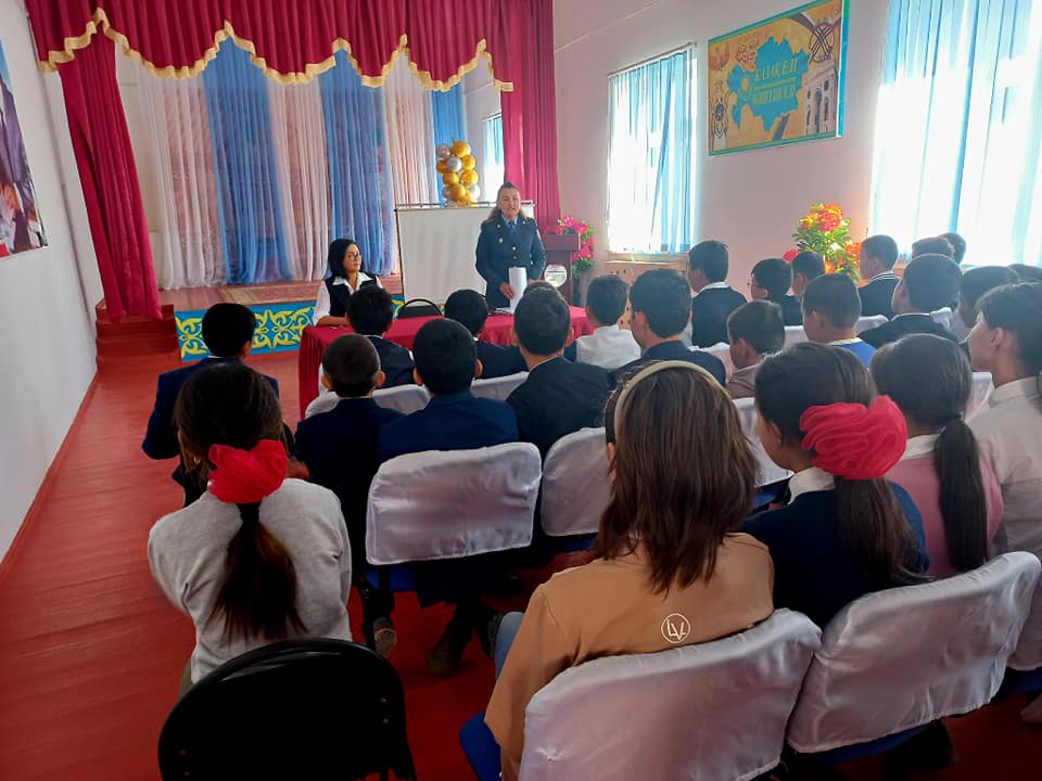 2022 жылы 19 қазан күні Отырар АПБ ЖПҚ ЮПБ -нің инспекторы полиция капитаны Ерденова Динара Жақсыбаевна келіп 5-9 сынып оқушылар арасында "Құқық бұзушылықтың алдын алу" тақырыбында оқушыларға түсіндірме жұмыстарын жүргізді.