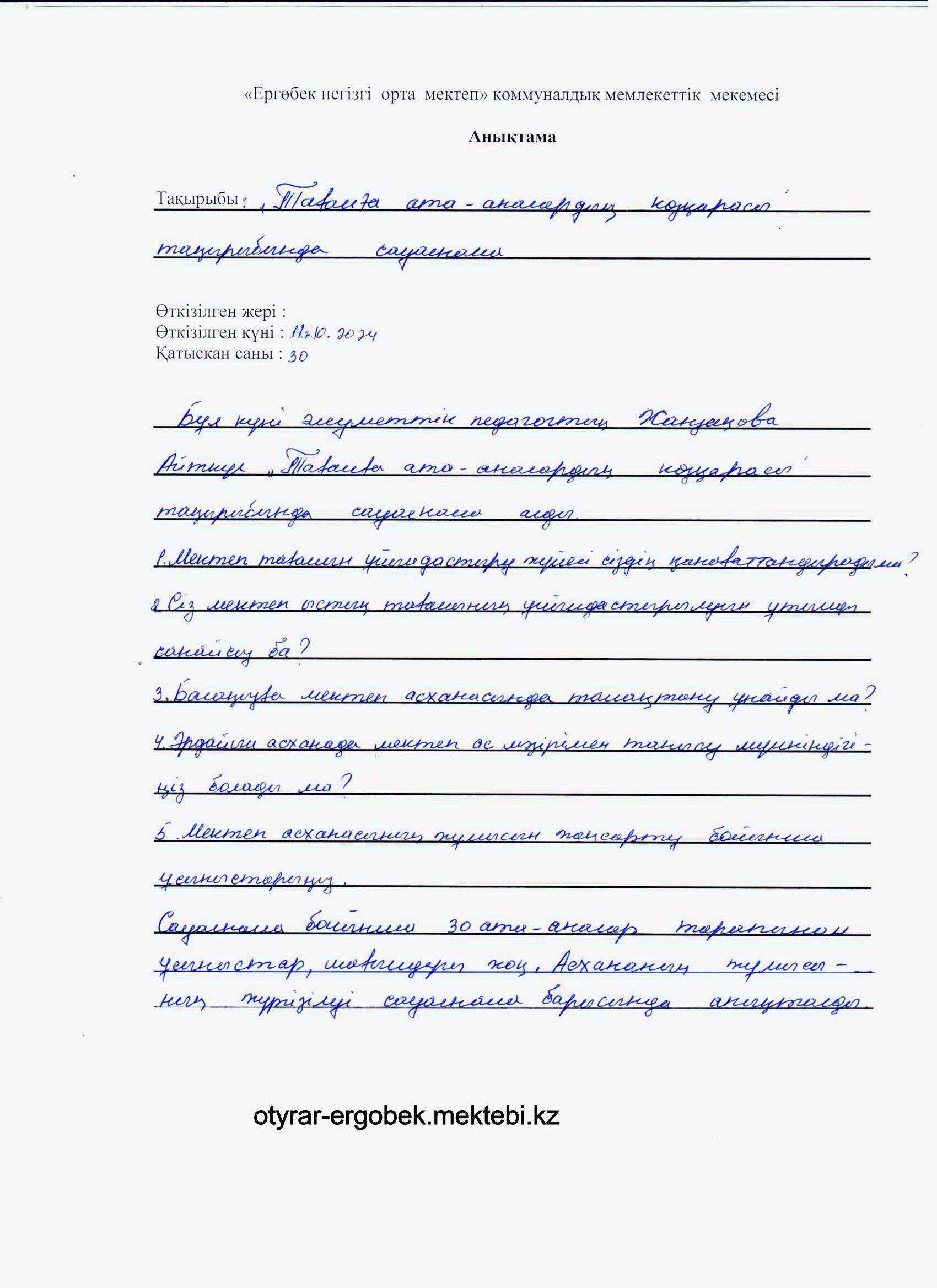 "Тағамға ата-аналардың көз қарасы" » "Ергөбек" негізгі орта мектебі